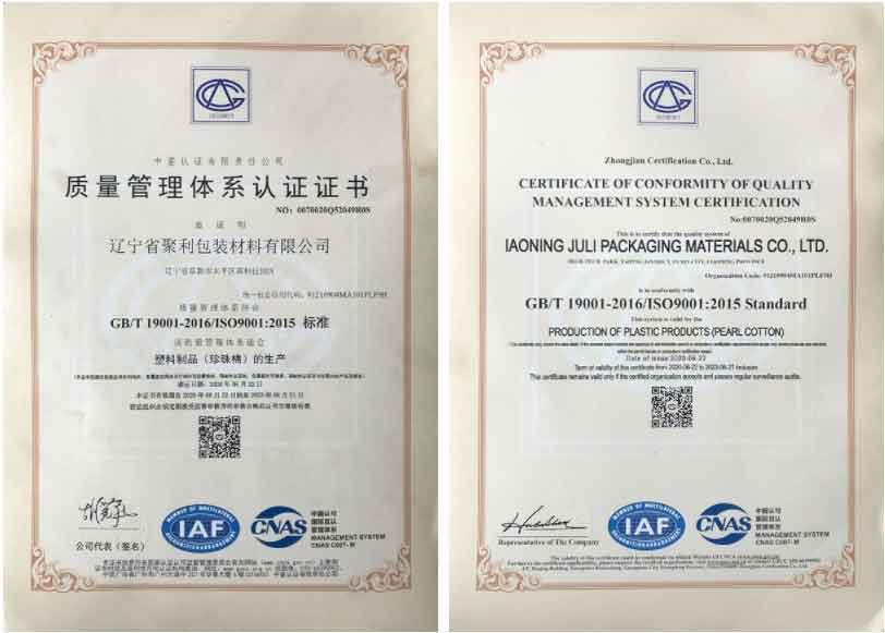 主要產品:EPE珍珠棉卷材、板材等,也可根據用戶實際需求提供異型包裝材料。 遼寧聚利包裝材料有限公司有一支積極進取,團結協作的隊伍,公司以“以技術為基礎,向管理要效益”為經營宗旨,以“以人為本,質量取勝,服務完善,客戶至上”的經營理念,憑借良好信譽,雄厚的技術實力,生產設備的先進性,質檢手段的完善性,過硬的產品質量,與廣大用戶合作,追求客戶的滿意。